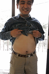 山崎も、今年が厄年。そこで、昨年末に中年の象徴であるこの放っておくとどうしようもなくなってしまうお腹…私の履いている30インチのジーパンすら入らない…このままでは、成人病一直線。そこで3月31日までにそのジーパンを7時間はいている約束で賭をしました。その時の、山崎が語った名文句が「するするっと」履けるようになりますよ。との話。全てがするするっと行けるようになると良いですね。